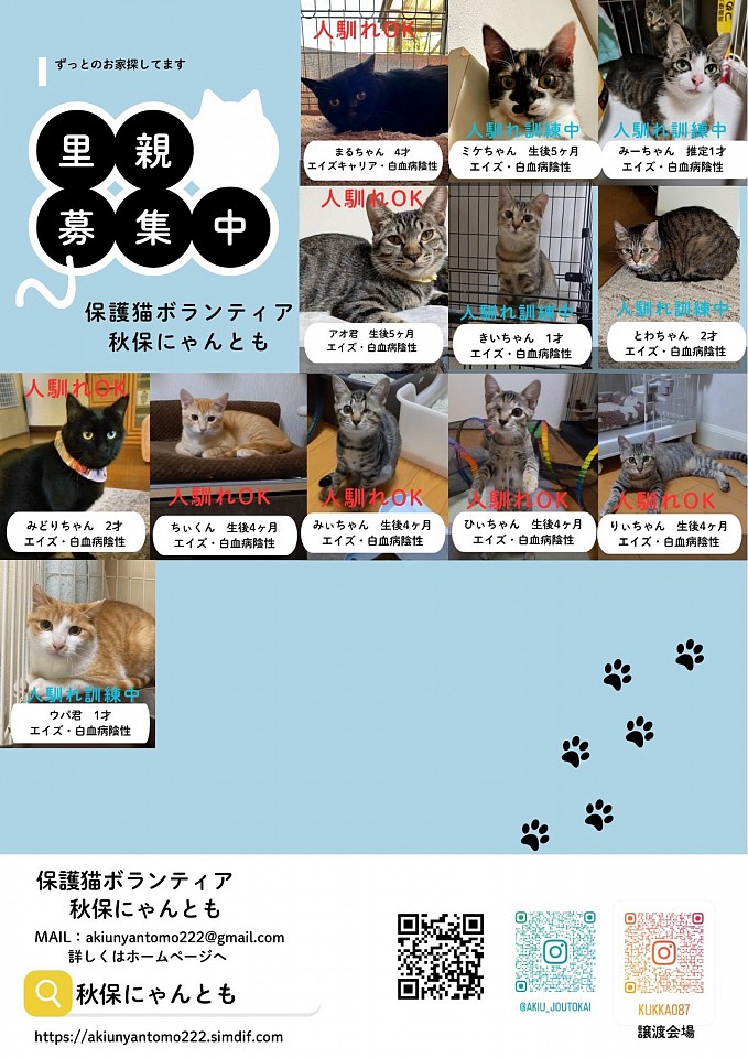 気になる子がいましたら、譲渡会もしくはお問い合わせ下さい